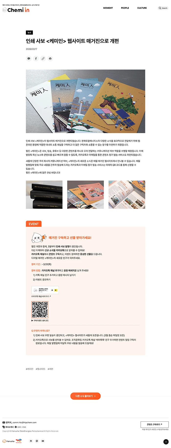 인쇄 사보를 웹 기반 매거진으로 개편해 대내외 소통 채널을 강화했습니다.