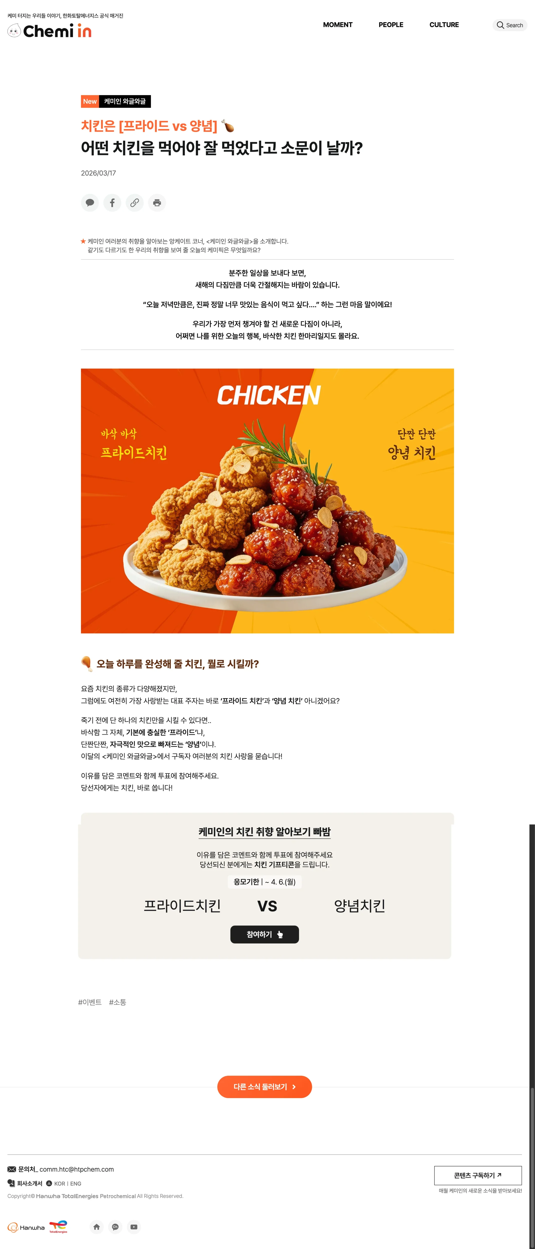 또한 하단 태그를 통해 연관 콘텐츠로 이어지는 탐색 구조를 형성했으며, 웹툰·퀴즈·이벤트 등 다양한 참여형 요소를 더해 단순 정보 전달을 넘어 사용자 참여와 소통이 이어지도록 구성했습니다.
